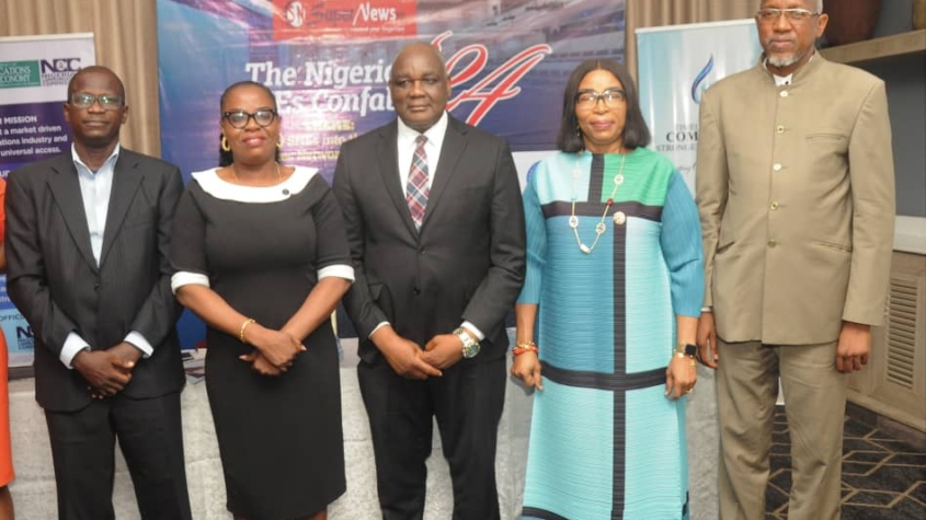 L-R:  Mr  Olukayode Shode, Deputy Director, Small and Medium Enterprises Development Agency of Nigeria (SMEDAN); Ngozi Onyeakusi, Publisher/CEO, SuperNews Nigeria; Reuben Muoka, Director of Public Affairs, Nigerian Communications Commission (NCC); Yeye Modupe Dada, Chairman, Nigeria Association of Small and Medium Enterprises (NASME), Lagos State, Chapter, and Kasimu Kurfi Garba. Managing Director/CEO, APT Securities and Funds Limited, during the Nigeria SME’s Confab ’24 organised by The SuperNews Nigeria, in Lagos on Thursday, June 13, 2024.
